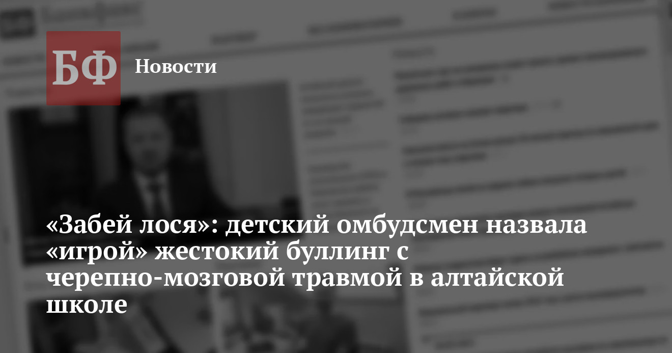 Жители села Поперечное Каменского района Алтайского края подняли тревогу в связи с жестокой травлей детей в местной школе со стороны более сильных товарищей. Об этом стало известно, когда один из подростков получил закрытую черепно-мозговую травму и сотрясение головного мозга, сообщают «Каменские известия». Позже выяснилось, что жертвами буллинга стали несколько детей, однако руководство школы не замечало издевательств и воспринимало избиения как игру. В настоящее время по факту случившегося проводятся следственные действия. Тем временем Уполномоченный по правам ребенка в крае Ольга Казанцева согласилась с педагогами в том, что к травмам якобы привела опасная игра «Забей лося», в «правилах» которой ей теперь предстоит разобраться.