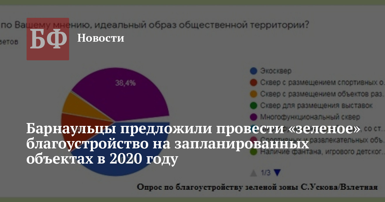 Изучение общественного мнения завершилось 20 декабря. Его целью было выяснить, что барнаульцы хотят видеть на объектах благоустройства, которые они выбрали в рамках интернет-голосования. Сами власти пока не совсем понимают, как подступиться к данным территориям, о чем говорил глава городского комитета по благоустройству Антон Шеломенцев.