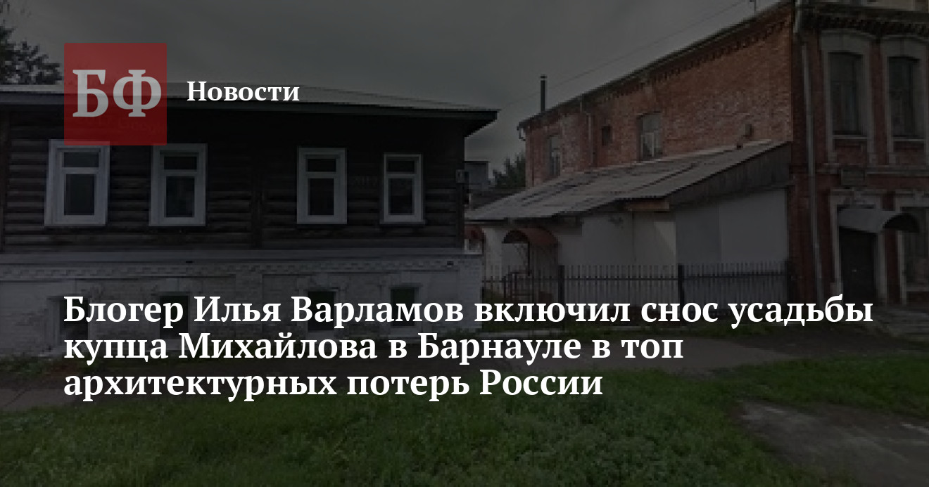 Популярный блогер-урбанист Илья Варламов составил топ-10 «жутких архитектурных потерь России в 2019 году», в который вошло уничтожение усадьбы купца Михайлова в Барнауле. Список опубликован на его странице в ЖЖ.