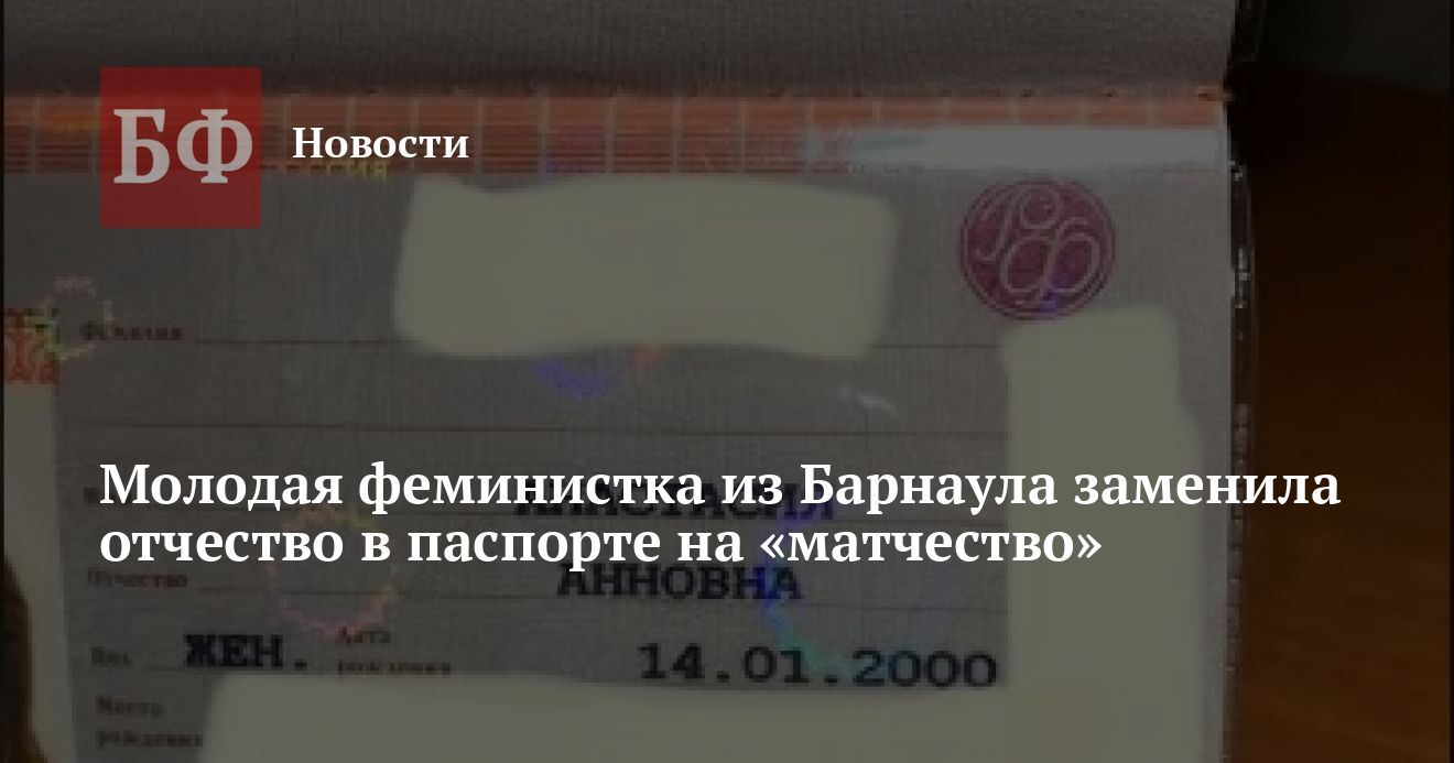 Барнаульская феминистка Анастасия Князева (фамилия изменена по ее просьбе) поменяла отчество в паспорте на «матчество»: вместо Александровны она стала Анновной. Свой поступок девушка объяснила РИА «Новости» тем, что по ее мнению, носить в документе «печать» отца, которого она ни разу не видела — абсурд.