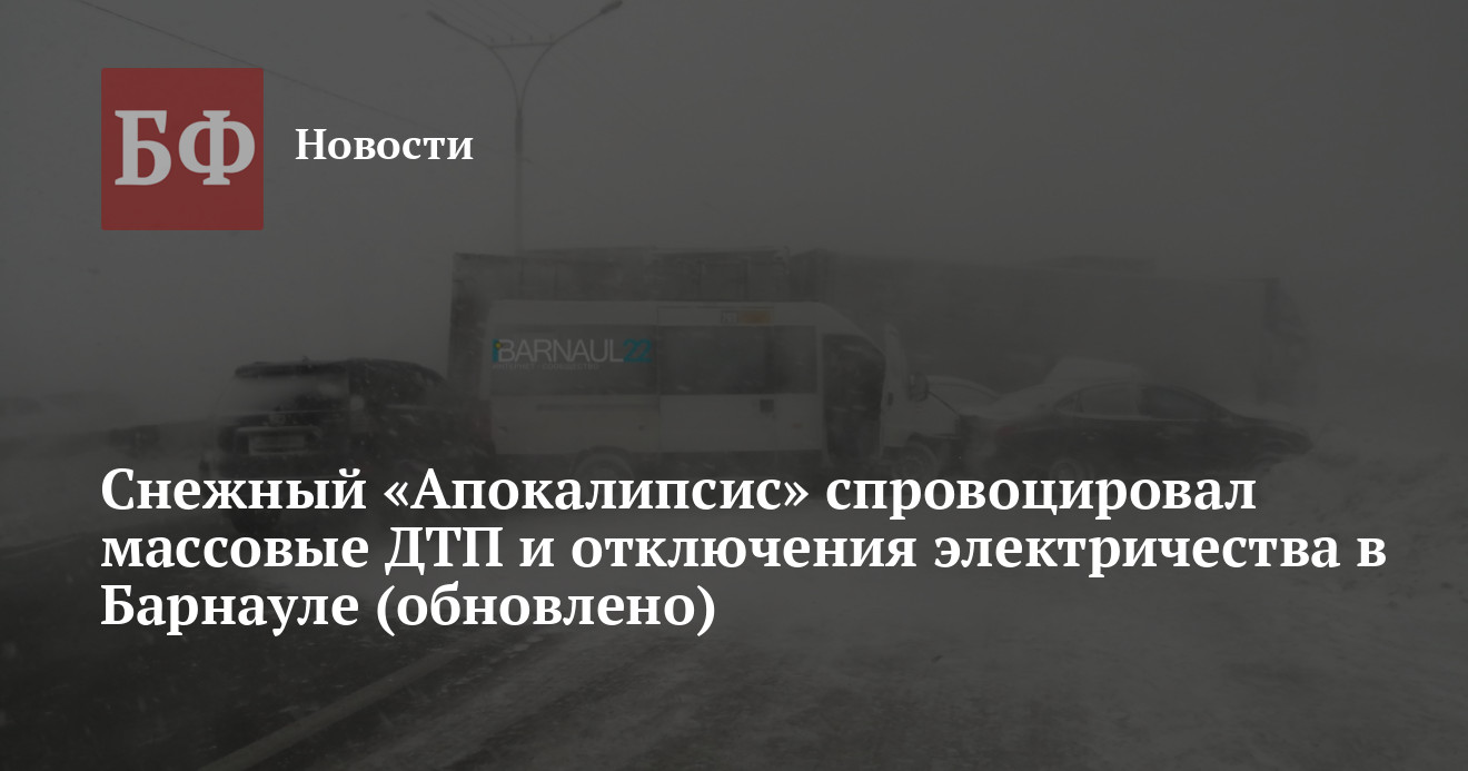 К вечеру 17 января разбушевавшаяся в Алтайском крае непогода с сильным ветром и значительными осадками в полной мере ударила по Барнаулу. На выезде из краевого центра произошла массовая авария, часть города осталась без электричества, очевидцы сообщают о сорванных конструкциях.