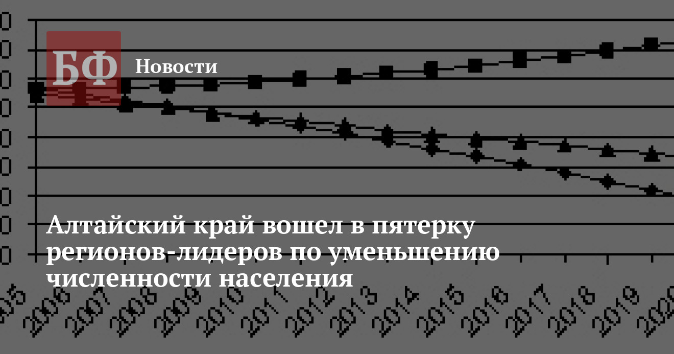 Постоянное население России сократилось второй год подряд, хотя и меньше, чем в 2018 году, сообщается в материалах Росстата. Миграционный прирост больше не компенсирует ускоряющуюся естественную убыль. В пятерку регионов, где численность населения уменьшается быстрее всего, вошел Алтайский край, следует из данных ведомства.