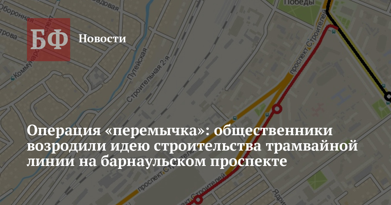 Активисты из сообщества «Барнаульский электротранспорт» «ВКонтакте» озвучили идею строительства новой трамвайной линии на проспекте Строителей, которая уже существовала в советское время. По задумке авторов, она должна соединить ветку, уходящую с проспекта Красноармейского в сторону проспекта Ленина, с той, что проходит через улицу Челюскинцев в сторону улицы Советской Армии. Жители города встретили предложение с интересом и начали обсуждать его в соцсетях.