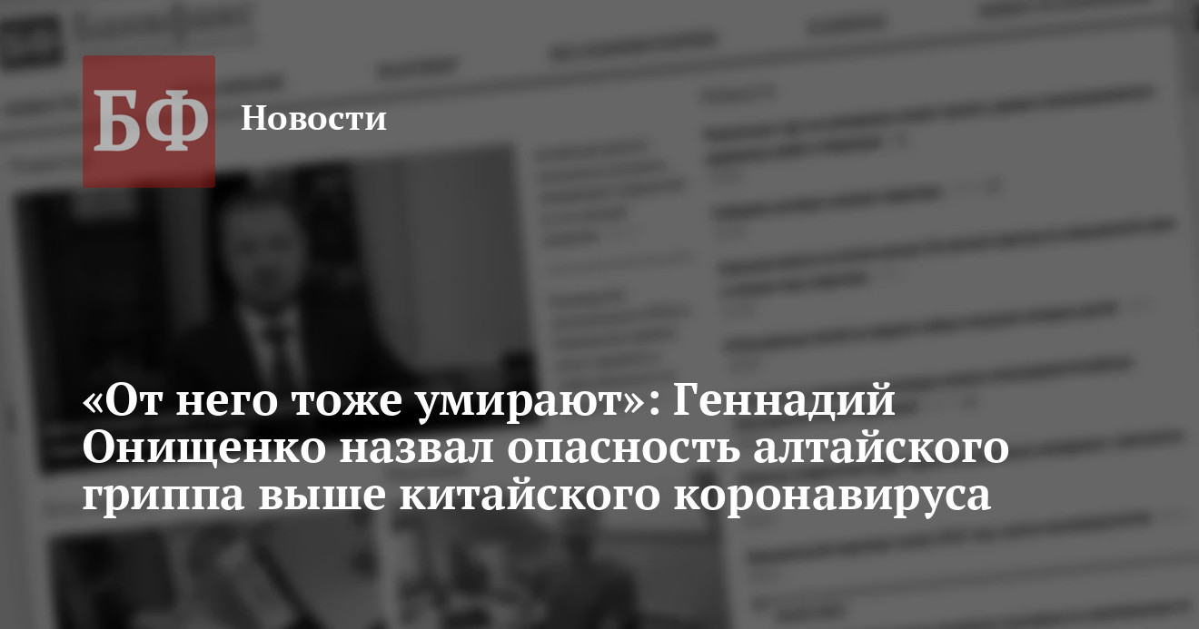 Более того, по мнению Онищенко, коронавирус — не такое страшное заболевание, как грипп. «Мы сегодня говорим о коронавирусе, заболеванием которым в РФ выявлено два случая китайских, но ничего не говорим о том, что порог заболеваемости гриппом превышен в Алтайском крае, сегодня у нас Москва подбирается к этим цифрам, а эти два заболевания очень похожи друг с другом», — отметил Онищенко. Он убежден, что сейчас важнее сосредоточиться на том, чтобы напомнить о подъеме заболеваемости гриппом, который «сегодня является самой опасной болезнью по количеству заболевших». «От него тоже умирают и уже сегодня явно, что от него умерло больше людей», — сказал Онищенко.
