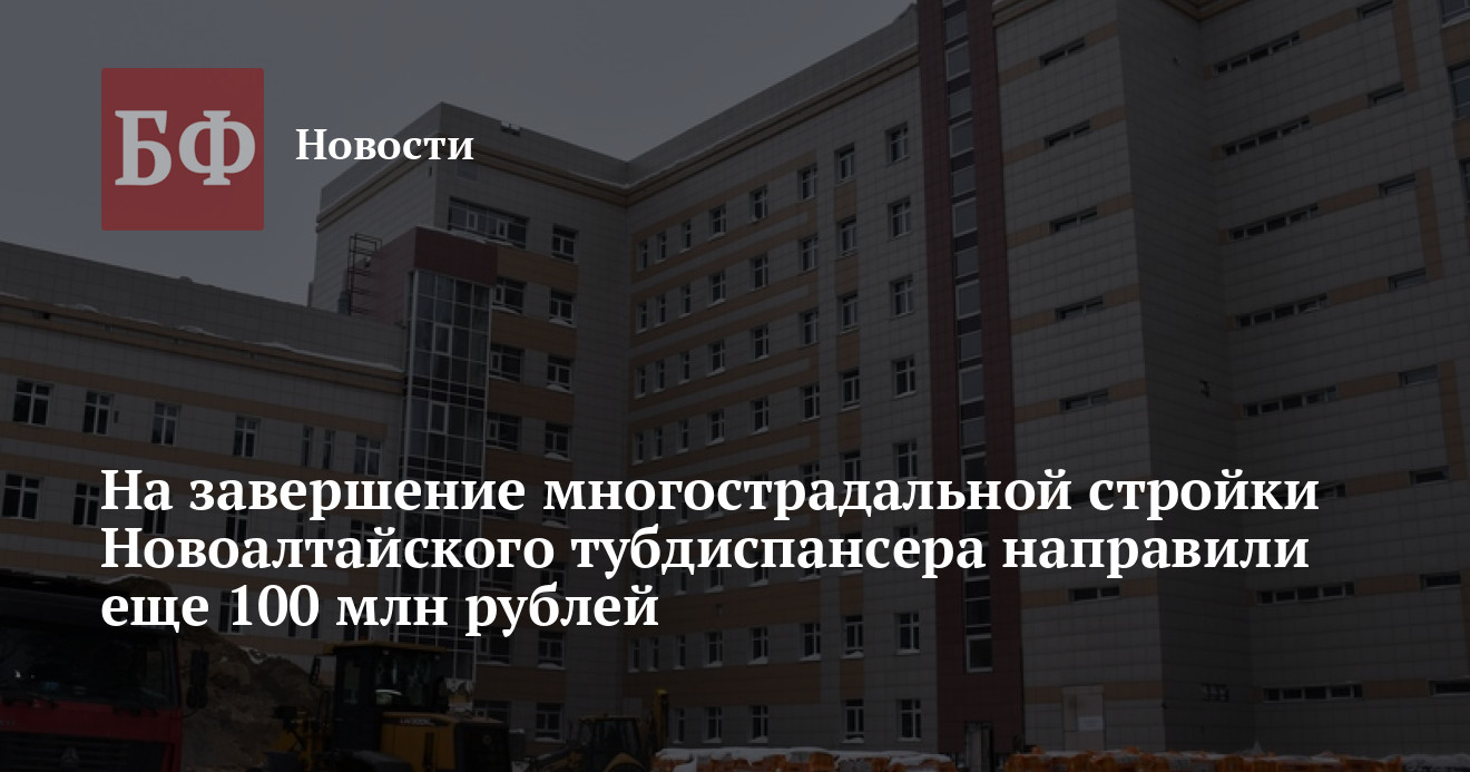 27 февраля замминистра строительства и ЖКХ Алтайского края Игорь Спивак заявил, что начавшаяся еще в 2011 году реконструкция противотуберкулезного диспансера в Новоалтайске продолжилась в 2020 году в соответствии с изменениями, внесенными в проектную документацию. При этом долгострою выделили из бюджета дополнительно еще 100 млн рублей, и теперь чиновники обещают, что работы будут завершены к концу 2021 года, хотя ранее глава алтайского Минздрава Дмитрий Попов говорил, что к этому сроку учреждение уже заработает. Об изменениях сообщается на сайте правительства Алтайского края.