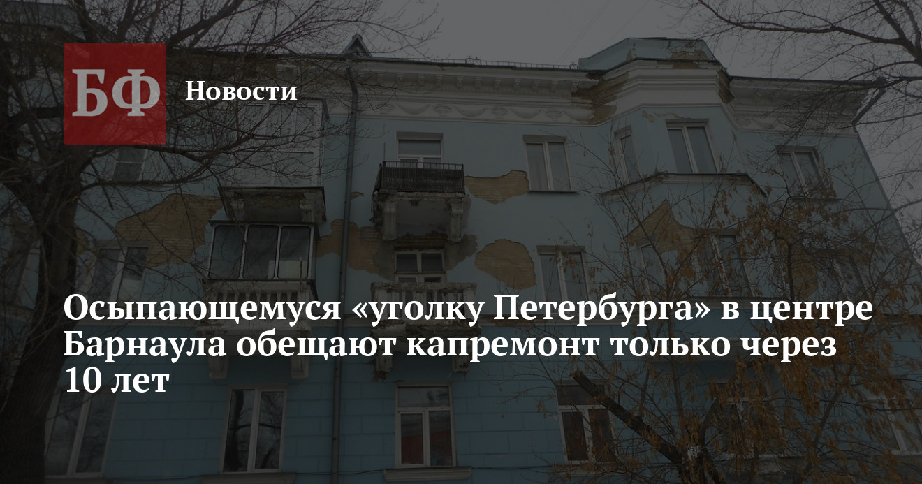 Капитальный ремонт облупившихся фасадов большинства исторических зданий на проспектах Ленина и Строителей в Барнауле, к состоянию которых предъявили претензии общественники, начнут не раньше 2029 года. Об этом городской комитет ЖКХ рассказал в ответе на официальный запрос ИА «Банкфакс». При этом крайний срок капремонта фасада для некоторых зданий вообще установлен на 2037 год, и пока зданиям остается рассчитывать на текущий ремонт за счет УК.