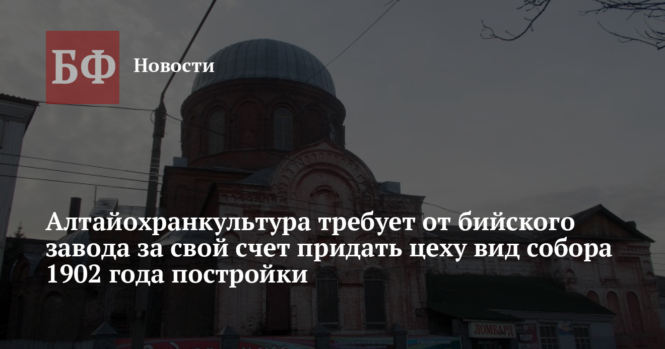 Бизнесмен из Бийска Евгений Печерский в очередной раз за последние несколько лет начал испытывать давление со стороны краевых чиновников, связанное с цехом, принадлежащим ОАО «Бийский завод «Электропечь». С его слов, Алтайохранкультура добивается того, чтобы компания, акционером которой он является, передала церкви земельный участок с расположенным на нем историческим зданием бывшего собора Александра Невского, где уже почти 80 лет действует эвакуированное в войну производство. Бизнесмен объяснил, что, по мнению ведомства, завод должен безвозмездно отдать здание и, более того, вернуть ему былой облик 1902 года, изображений и даже описаний которого не сохранилось. Из-за ситуации предприятию грозит разорение — в желании угодить священнослужителям чиновники якобы готовы довести завод до банкротства.