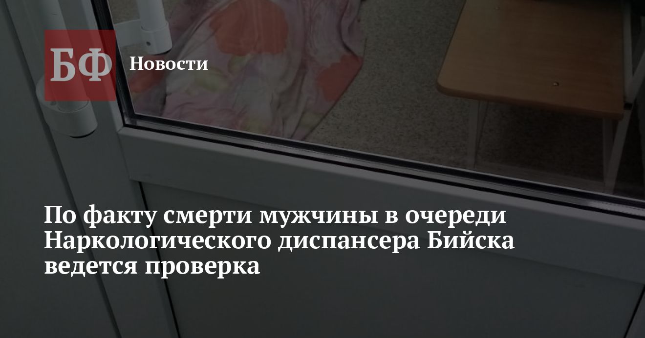 Утром 10 марта в КГБУЗ «Наркологический диспансер» Бийска в очереди скончался человек, сообщается в сообществе «Инцидент Бийск». В СУ СКР по Алтайскому краю ИА «Банкфакс» данную информацию подтвердили и сообщили, что по данному факту уже проводится доследственная проверка.