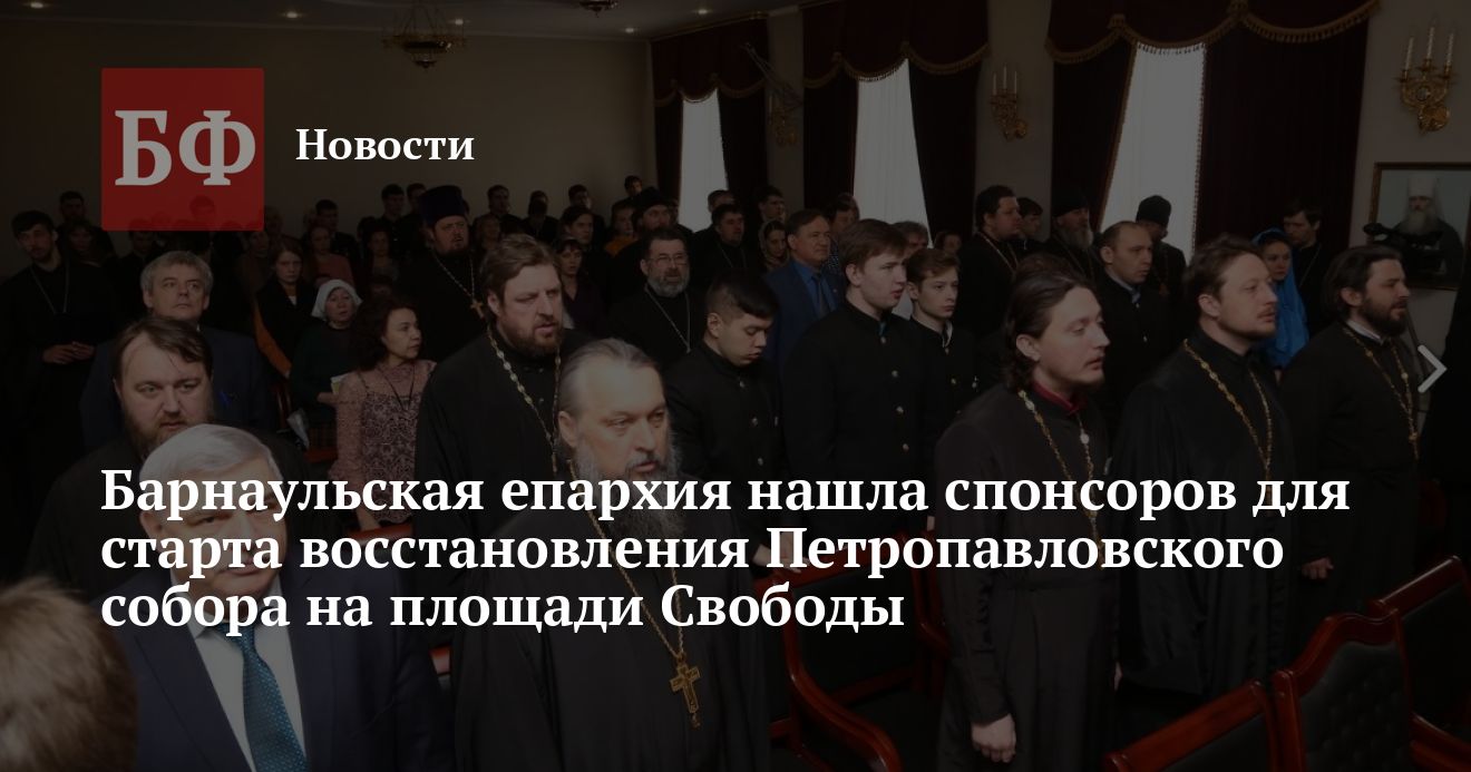 Барнаульская епархия нашла деньги для реализации первого этапа восстановления разрушенного в начале ХХ века Петропавловского собора, который располагался на территории современной площади Свободы (до революции 1917 года — Соборная площадь). Как рассказал «Банкфаксу» секретарь епархии протоиерей Георгий Крейдун, речь пока не идет о самом строительстве, но средства потребуются на проектирование и проведение раскопок. При этом он обозначил планы церкви, в соответствии с которыми существующему здесь сейчас скверу придется «подвинуться», а политическим активистам, вероятно, — искать новое место для гайд-парка.