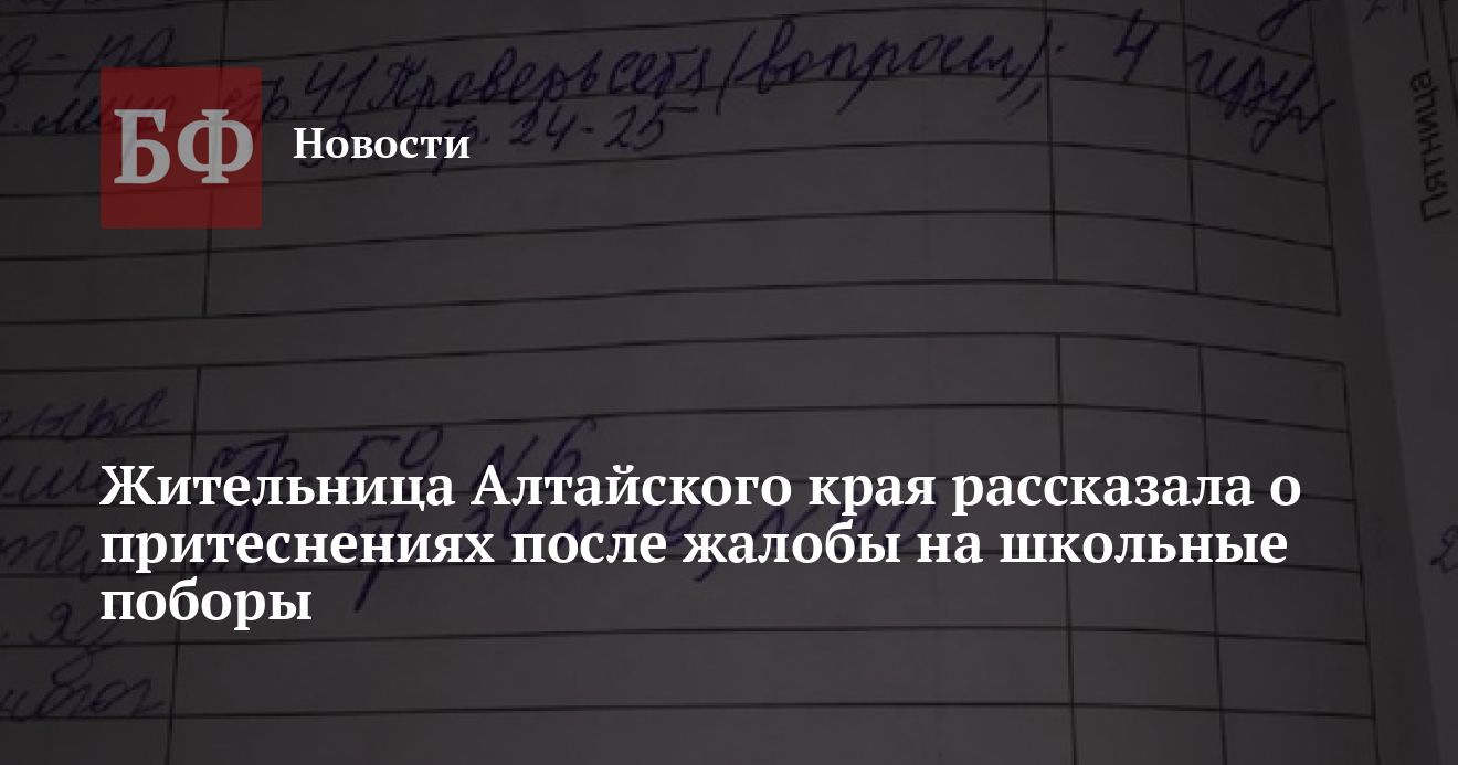 Наталья Лазарева из села Максимовка Славгородского района утверждает, что после того как она отказалась сдавать деньги на ремонт пола в школе, а также пожаловалась на поборы в комитет по образованию, к ее детям стали придираться педагоги, а она сама попала под прессинг комиссии по делам несовершеннолетних. С такими заявлениями женщина обратилась в «Московский комсомолец на Алтае».
