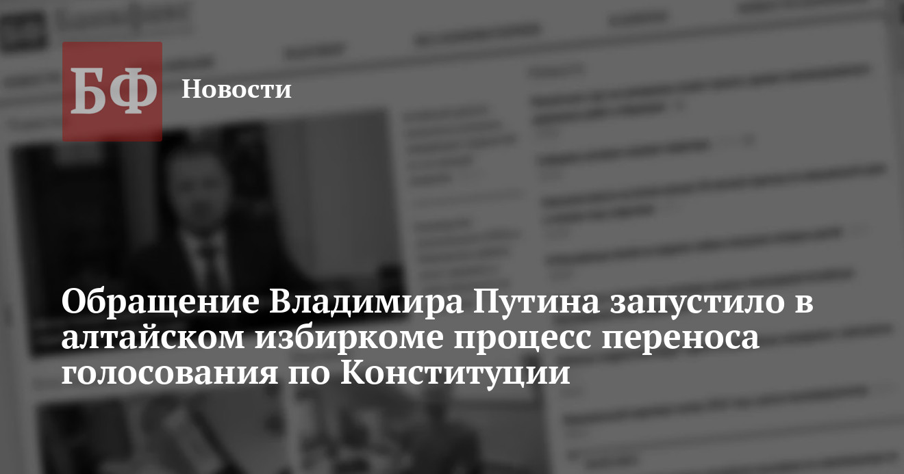 Председатель избиркома Алтайского края Ирина Акимова заявила, что регион готов к переносу сроков проведения общероссийского голосования по внесению поправок в Конституцию РФ, о котором президент Владимир Путин заявил в ходе своего обращения к россиянам. Об этом сообщается на сайте правительства Алтайского края. Обращение главы государства ожидаемо коснулось этой темы, кроме того, президент сделал несколько важных заявлений о мерах по сдерживанию распространения коронавируса.