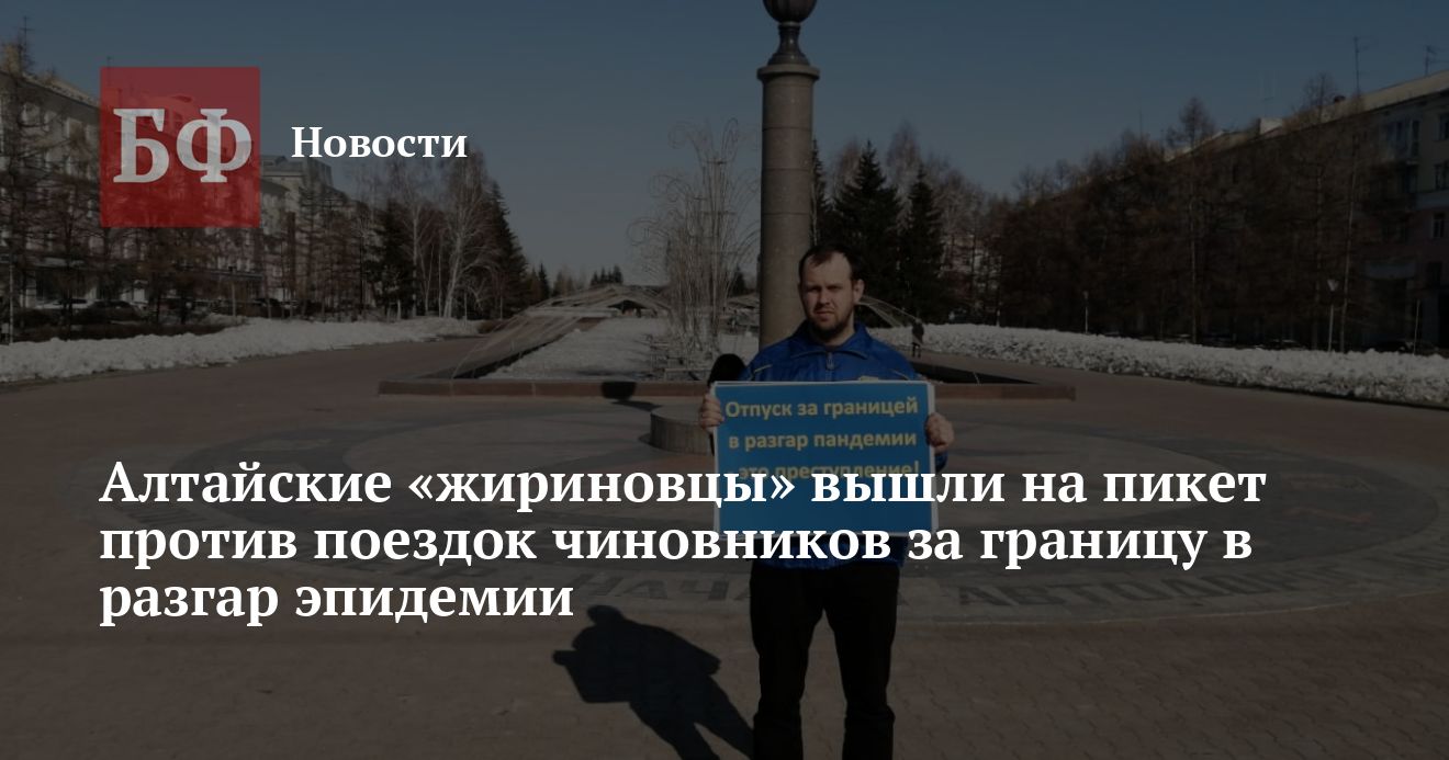 26 марта активист барнаульской ячейки ЛДПР Петр Кайдаш вышел на одиночный пикет, чтобы выразить возмущение фактами поездок чиновников на отдых в опасные с эпидемиологической точки зрения регионы мира в условиях распространения инфекции. Он сравнил такие действия представителей власти с преступлением, следует из сообщения пресс-службы реготделения партии.