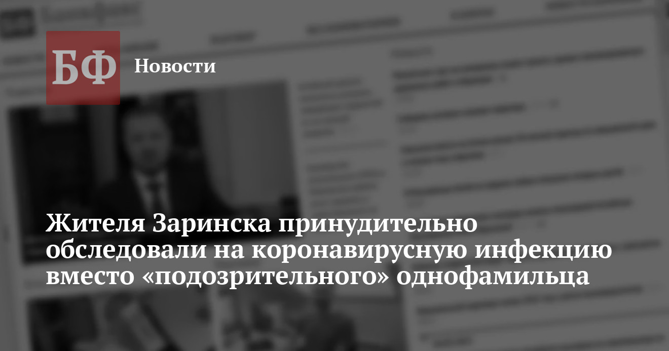 В Заринске у одного из горожан принудительно взяли тест на коронавирусную инфекцию в связи с тем, что его имя и фамилия оказались идентичны имени другого местного жителя, которого подозревают в заражении. Об этом сначала сообщили родственники мужчины, а позже данную информацию подтвердили в региональном Минздраве, сказано в сообществе Baarnaul22 «ВКонтакте».