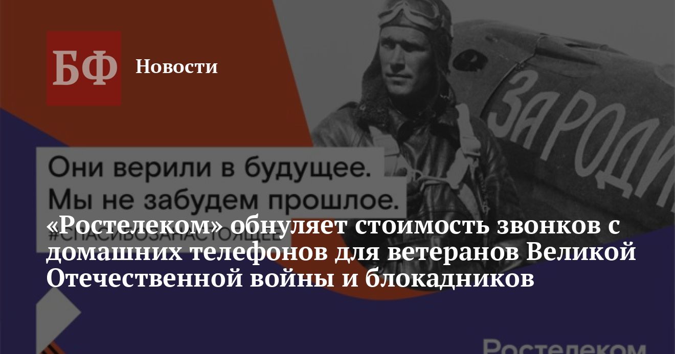 В честь 75-летия Великой Победы участники и инвалиды Великой Отечественной войны, а также жители блокадного Ленинграда, которые пользуются домашними телефонами «Ростелекома», будут переведены на тарифный план «Ветеран» с бесплатными звонками на постоянной основе. Тарифный план подключается автоматически с 1 мая 2020 года по спискам, которые предоставили органы власти субъектов Российской Федерации.