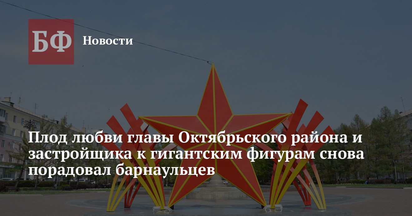 В преддверии празднования 75-ления Победы в Барнауле на нулевом километре установили гигантскую конструкцию с красной звездой. Как сообщается на сайте города, фигура была изготовлена при тесном сотрудничестве администрации Октябрьского района и инвестиционно-строительной компании «Союз». Районные чиновники и застройщик в последние годы активно взаимодействуют, регулярно порождая различные архитектурные формы.