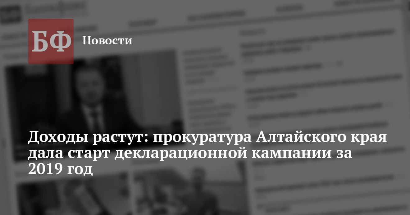 Сотрудники прокуратуры Алтайского края отчитались о своих доходах за 2019 год, открыв традиционную майскую декларационную кампанию. Нельзя не отметить, что заработки руководителей краевого ведомства существенно возросли по сравнению с предыдущим периодом — более чем на 0,5 млн рублей в среднем для каждого. Соответствующие данные опубликованы на сайте надзорного ведомства.
