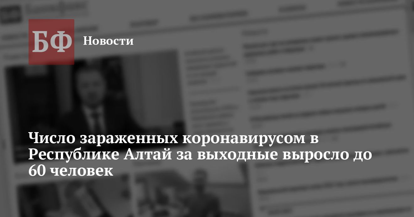 В Республике Алтай по данным на 11 мая было выявлено в общей сложности 60 случаев заражения коронавирусной инфекцией. Как сообщает оперативный штаб региона в своем Telegram-канале, за минувшие праздничные выходные было выявлено восемь инфицированных.