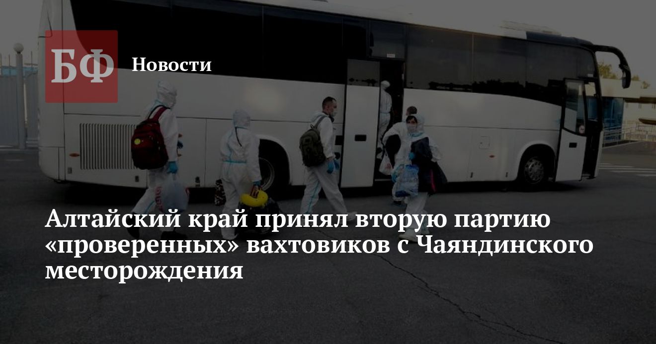 13 мая вечером 37 вахтовиков из Алтайского края, работавших на Чаяндинском месторождении, доставили специальным авиарейсом в аэропорт Барнаула. Как информирует правительство региона, у прибывших работников были взяты тесты на коронавирус, которые показали отрицательные результаты — люди здоровы. Тем не менее, по прибытии в регион вахтовики пройдут дополнительное обследование.