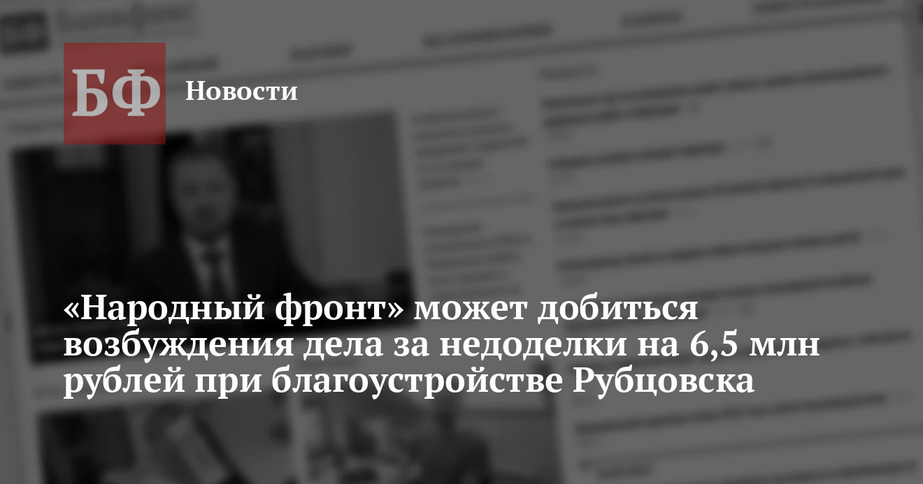 «Общероссийский народный фронт» Алтайского края выявил нарушения при благоустройстве общественных пространств Рубцовска по госпрограмме «Формирование комфортной городской среды». Об этом ИА «Банкфакс» рассказала сопредседатель краевого отделения ОНФ Евгения Гущина. Речь идет о недоделках, которые правоохранительные органы могут квалифицировать как хищения на сумму порядка 6,5 млн рублей.