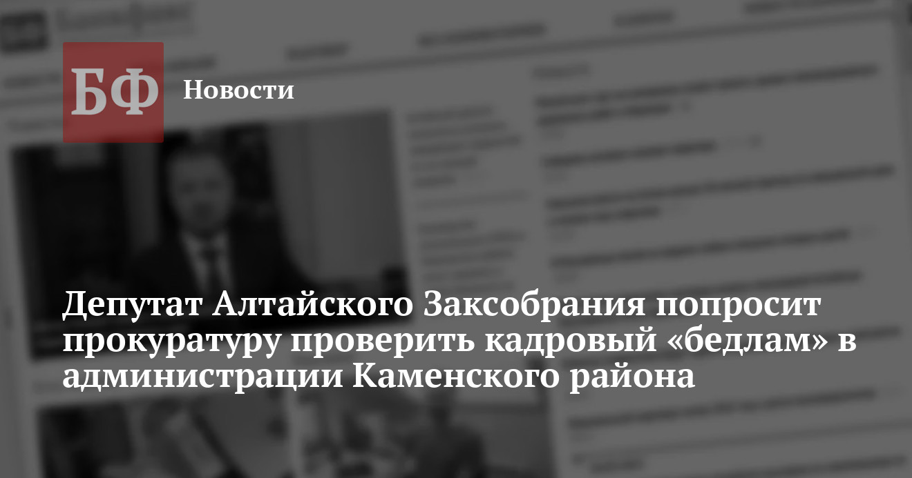 Депутат Алтайского Заксобрания Василий Железовский намерен обратиться в прокуратуру с жалобой на действия сотрудников администрации Каменского района, которые, по его мнению, нарушили трудовое законодательство. Как сообщил депутат ИА «Банкфакс», 21 мая его назначили директором Каменской спортивной школы, но всего через два дня выпустили новый приказ об отмене предыдущего (копии имеются в распоряжении редакции). Причины столь быстрой отставки в документе не раскрываются, а и.о. председателя районного комитета по физкультуре и спорту Снежана Бабкина затруднилась уточнить корреспонденту и самому Железовскому обстоятельства этого решения. Ситуация разворачивается на фоне ухода с поста руководителя комитета Сергея Карелина при странных обстоятельствах.