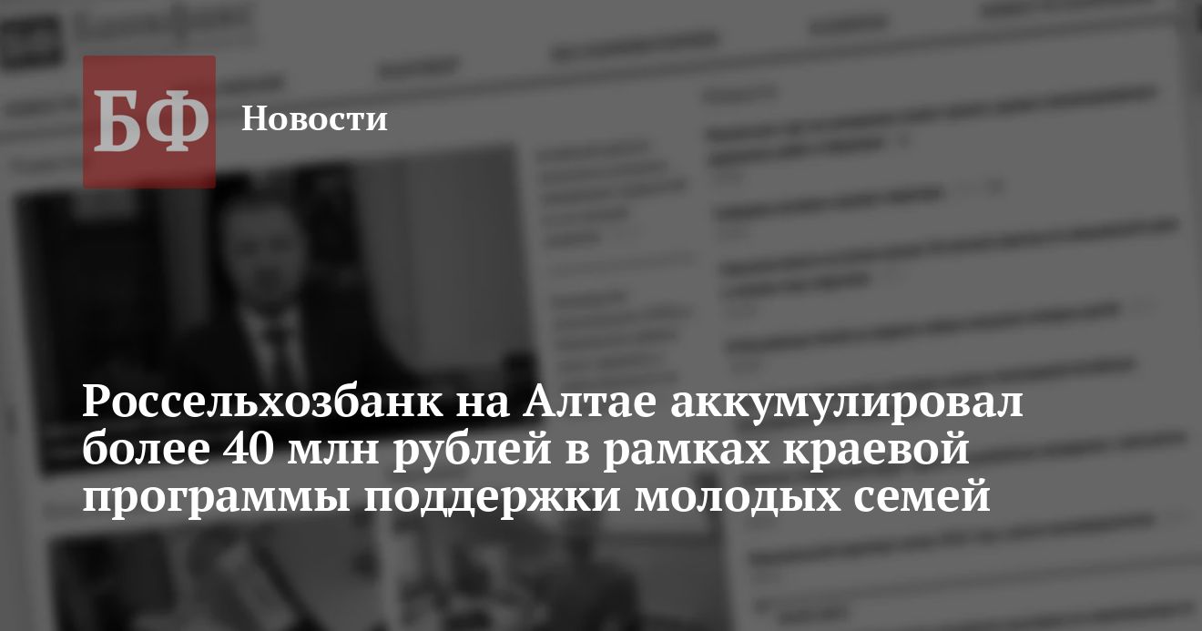 Россельхозбанк в рамках краевой программы «Обеспечение жильем молодых семей в Алтайском крае» открыл 229 счетов по государственной программе «Молодая семья», где аккумулировал более 40 млн рублей. Об этом сообщила пресс-служба банка.