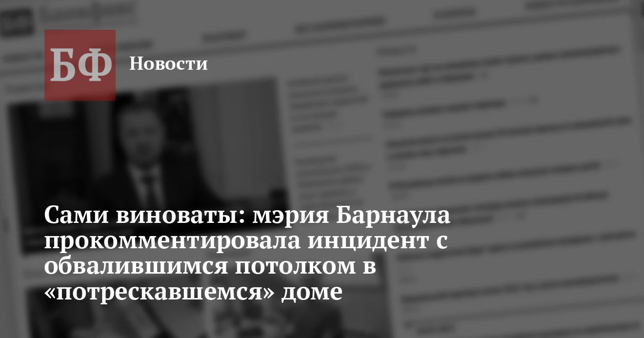 Администрация Барнаула прокомментировала инцидент с обвалившимся в ходе ремонтных работ потолком в доме на 1-й Западной, 47 «А» 1949 года постройки. Со слов представителей пресс-службы мэрии, угрозы жизни и здоровью жильцов на данный момент нет. Кроме того граждане якобы сами долгое время не занимались ремонтом потолка.