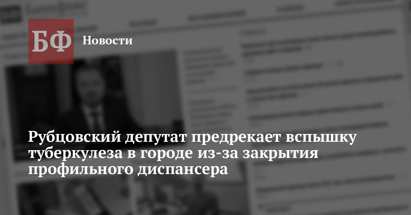 Депутат Рубцовского городского Совета от фракции КПРФ Надежда Дрюпина не исключает, что в ближайшее время в городе можно ожидать массовых заболеваний туберкулезом, поскольку местный тубдиспансер в формате круглосуточного стационара был закрыт, а в соседнее село Лебяжье болеющие граждане отказываются ездить. Причин тому несколько: и дальнее расстояние между населенными пунктами, и отсутствие лицензии у Лебяженской туббольницы, и боязнь рубцовчан заразиться там более тяжелой формой болезни. Между тем, по сведениям депутата, за последние полгода в Рубцовске умерло от туберкулеза 23 человека. ИА «Банкфакс» направило запрос в Минздрав края с просьбой прокомментировать данную информацию.
