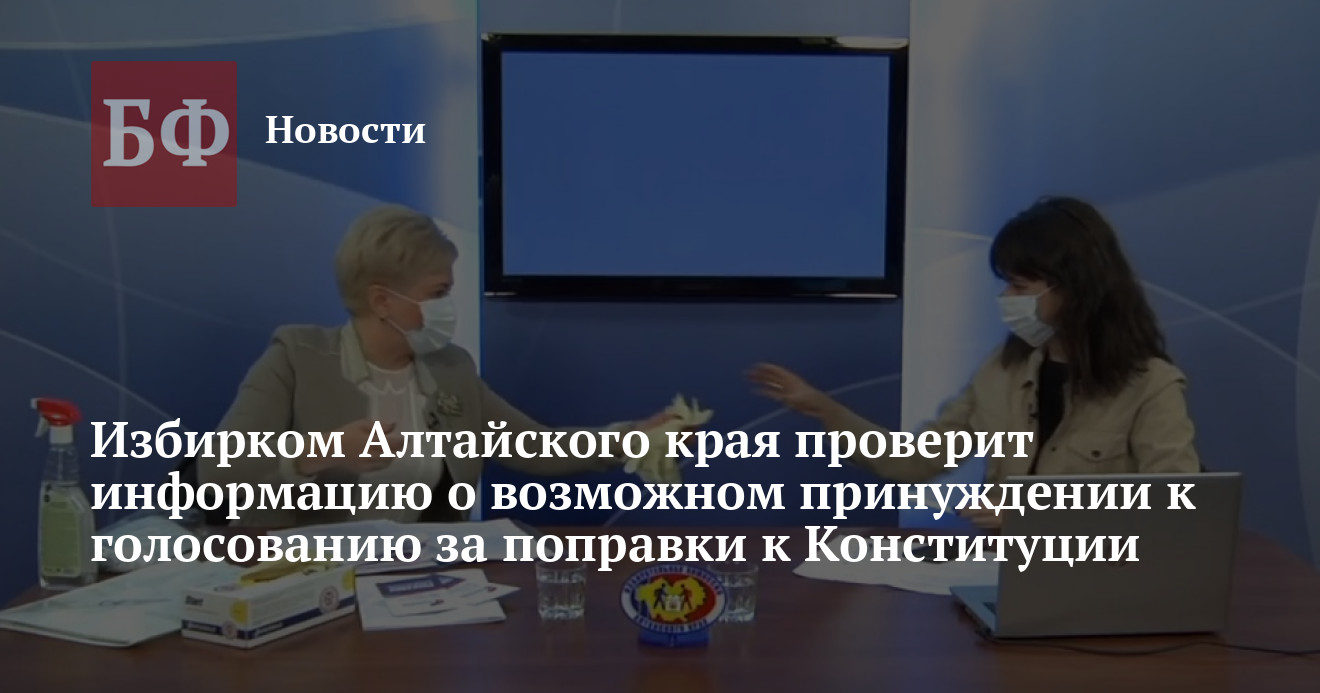 Председатель Избирательной комиссии Алтайского края Ирина Акимова, отвечая на вопрос о ситуации, заявила, что не обладает такой информацией. Граждане должны добровольно принимать решение — одобрять или не одобрять поправки в Конституцию и вообще участвовать ли в процедуре. Акимова подчеркнула, что в ходе всероссийского голосования не может идти речи ни о каких форматах принуждения. Председатель крайизбиркома отметила, что жалоб и обращений в крайизбирком на этот счет не поступало. «Мы принимаем этот вопрос в работу, чтобы осуществить проверку по этим фактам», — заверила Акимова. Нельзя исключать, что работники опасаются предавать ситуацию огласке от своего имени.