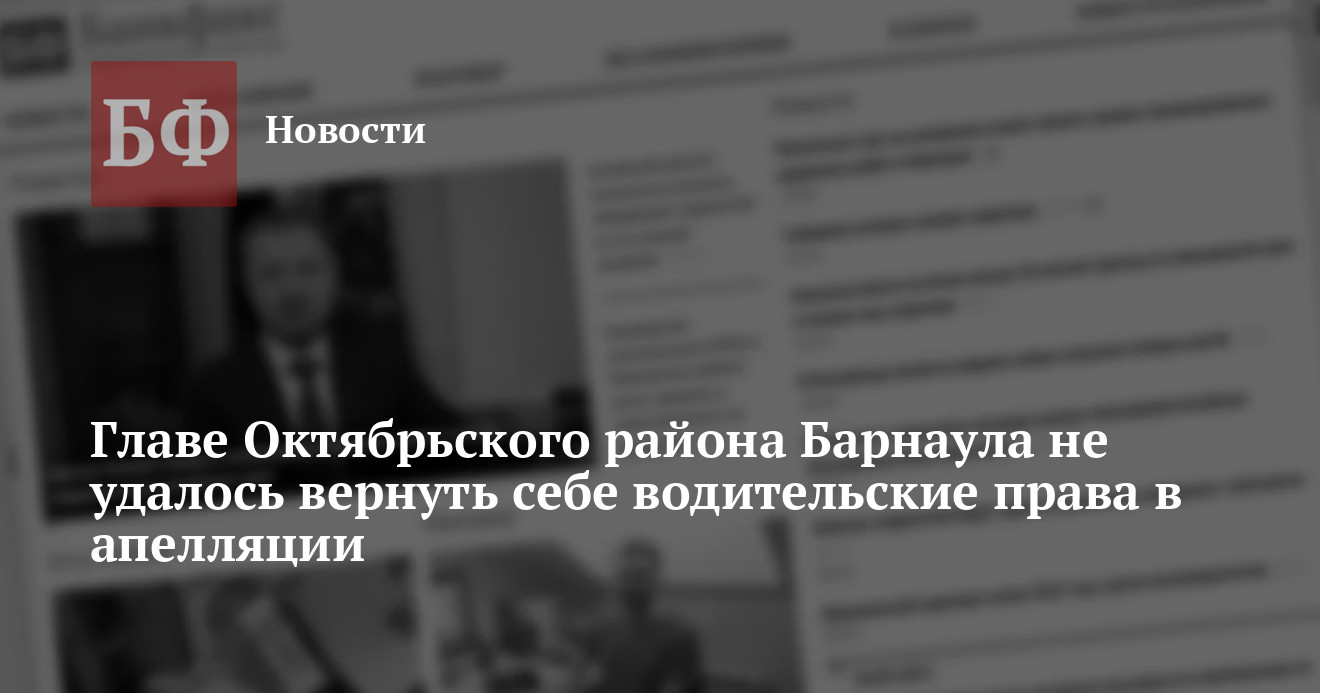 16 июня Центральный районный суд Барнаула рассмотрел апелляционную жалобу главы Октябрьского района города Вячеслава Новикова, который пытался оспорить постановление о лишении водительских прав и штраф за отказ от медосвидетельствования после ДТП. Как рассказали «Банкфаксу» в суде, Новикову не удалось доказать свою правоту даже со второй попытки.