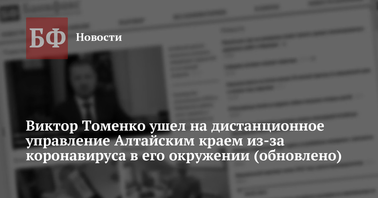 Губернатор Алтайского края Виктор Томенко принял решение уйти на самоизоляцию, оставаться дома и организовать работу по руководству правительством региона в дистанционном режиме. Это вызвано тем, что у нескольких сотрудников, входящих в круг регулярного взаимодействия с губернатором, выявлен положительный тест на коронавирус, сообщается на сайте кабмина.
