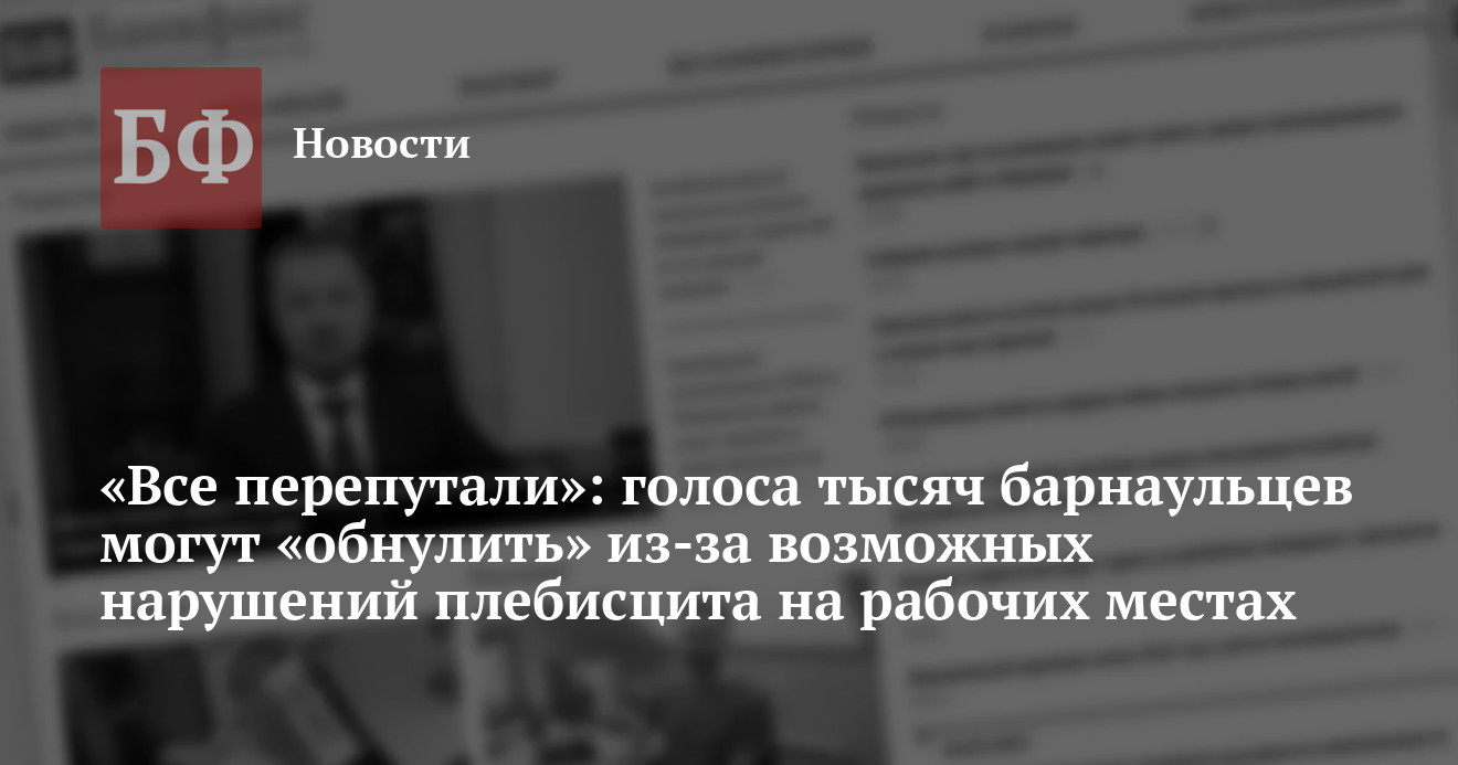 Член территориальной избирательной комиссии Центрального района Барнаула Владимир Лямкин направил заявление с просьбой проверить порядок голосования по поправкам в Конституцию РФ, которое проходило в муниципальных и государственных организациях, а также на предприятиях и в коммерческих структурах. Он выявил факты, согласно которым процедура могла проходить с нарушением закона, регулирующего текущий плебисцит. Если его мнение подтвердится, то голоса избирателей, полученные таким образом, могут быть аннулированы.