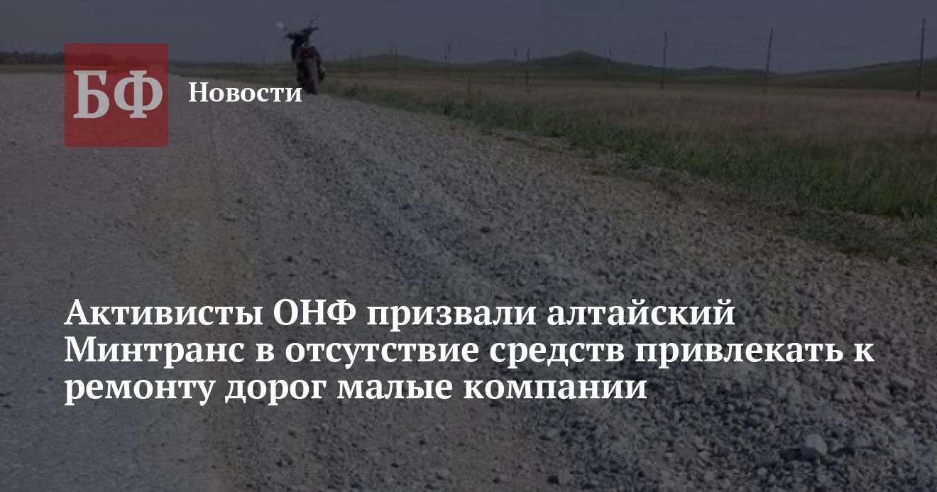 Как уточнили в реготделении ОНФ, в июне 2020 года активисты обратились в региональный Минтранс по поводу ситуации в Курьинском районе. Они сообщили властям, что дорогу Курья — Колывань — Бугрышиха, проходящую через Усть-Таловку, разбили большегрузы, которые вывозят щебень с Колыванского камнерезного завода и материалы с дробильной фабрики. При этом дорога имеет социальное значение — по ней проходит автобусный маршрут, машина «скорой помощи» доставляет больных в Курьинскую ЦРБ, дети пересекают дорогу по пути в школу.