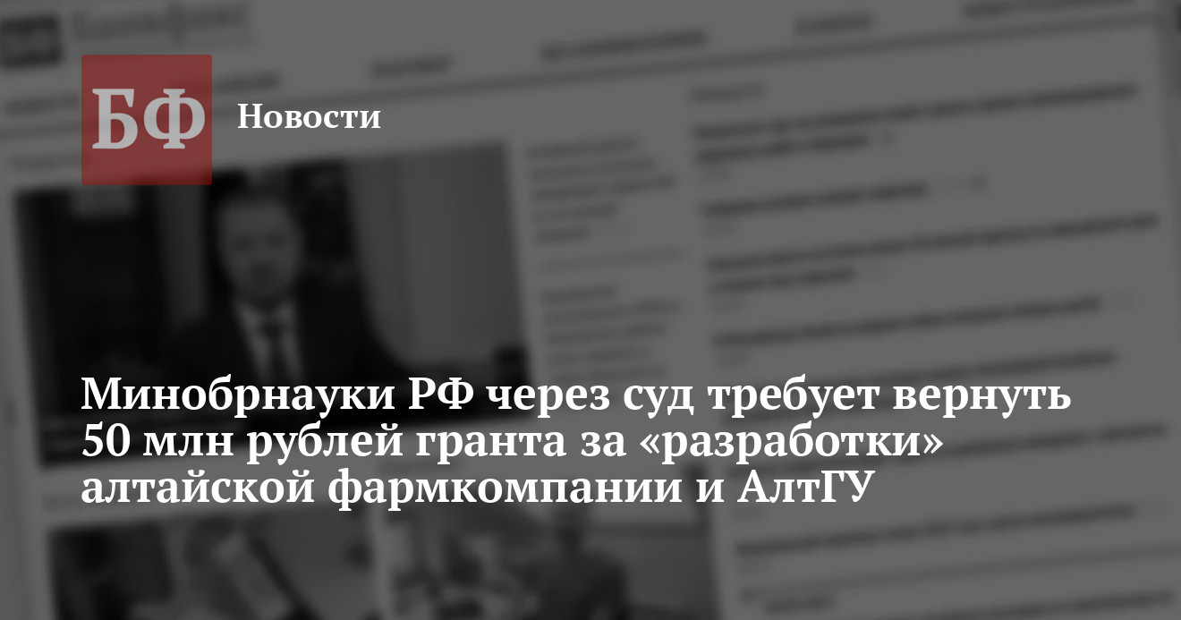 Министерство науки и высшего образования РФ в рамках судебного разбирательства пытается истребовать почти 50 млн рублей у бийского АО «Алтайвитамины». Согласно информации в документах, средства были предоставлены в рамках одного из государственных контрактов — «Алтайвитамины» и Алтайский госуниверситет занимались совместным проектом на средства гранта. Как удалось выяснить «Банкфаксу», финансовые претензии федерального министерства касаются создания высокотехнологичного производства препарата против астмы.