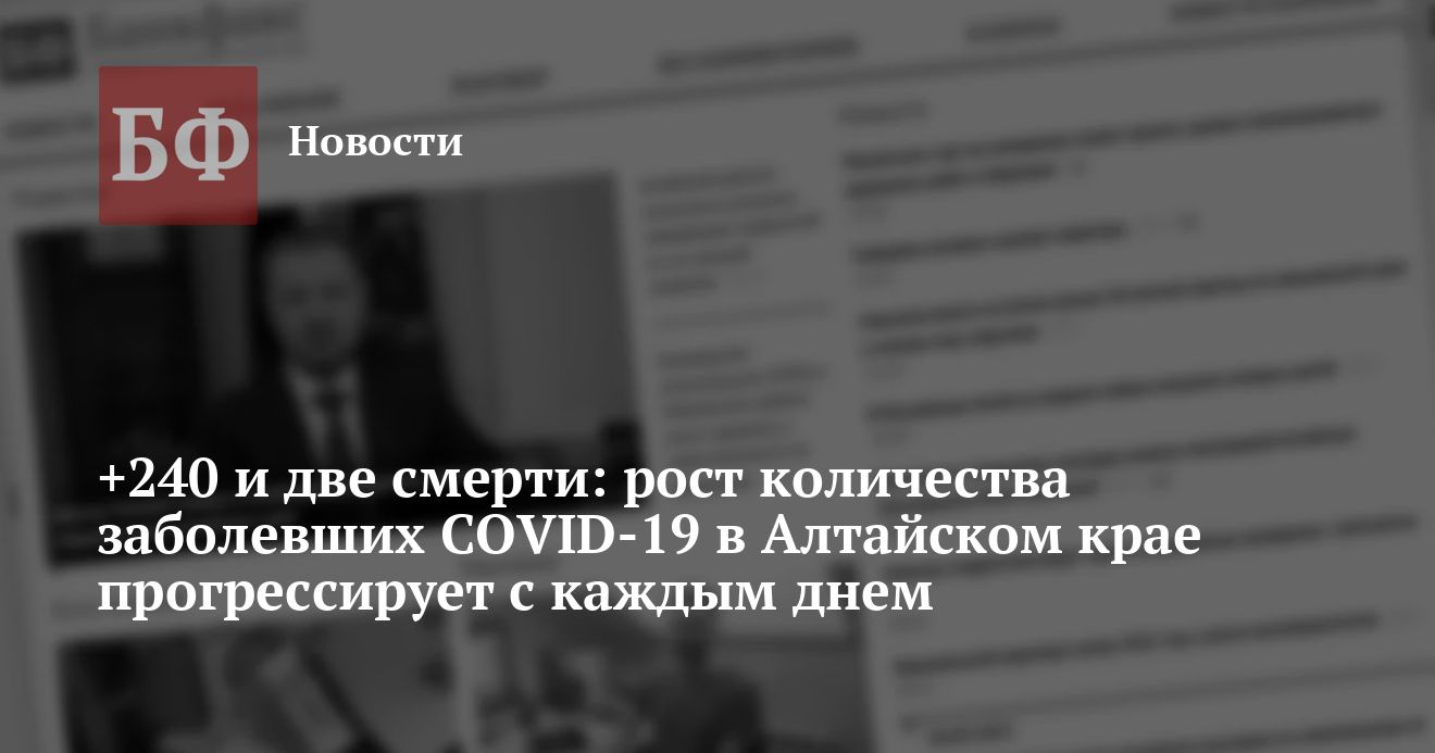 За прошедшие сутки в Алтайском крае выявлено 240 инфицированных COVID-19. При этом выздоровело 109 пациентов, кроме того, зарегистрировано два смертельных случая, один из них от коронавируса. Всего в крае на данный момент инфицирован 5361 человек, выписаны по выздоровлению — 3676, всего заболевших, которые на сегодняшний день продолжают лечение - 1566 человек.