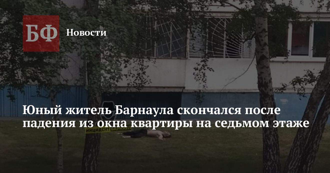 23 июля днем в Индустриальном районе Барнаула из окна девятиэтажного дома выпал молодой парень. Как сообщали очевидцы событий в группе «Инцидент Барнаул» «ВКонтакте», сначала он еще подавал признаки жизни. На месте происшествия работали медики и сотрудники полиции. Однако позже в СУ СКР по Алтайскому краю уточнили, что юноша от полученных травм скончался.