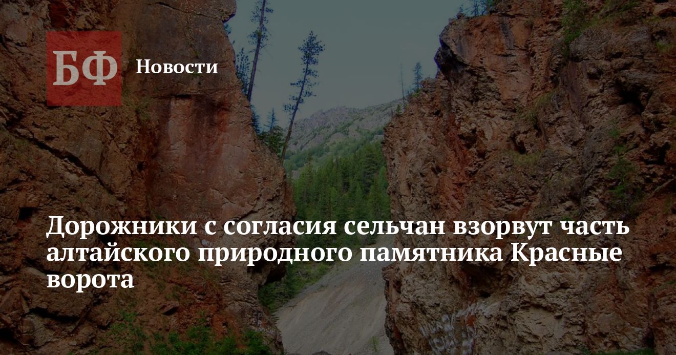 «Горно-Алтайавтодор» предлагает расширить нынешнюю однополосную проезжую часть в направлении Акташ — Усть-Улаган — Балыктуюль по проекту «Безопасные и качественные автомобильные дороги». Однако помехой для этого стали необычные природные «ворота» из красных скал, расположенные в Улаганском районе, в 15 км от поселка Акташ. Поэтому дорожники предлагают взорвать часть природного горного массива и просят на это разрешения у местных жителей, рассказал ИА «Банкфакс» начальник производственно-технического отдела «Горно-Алтайавтодора» Роман Митин. Специалисты уверены, что расширение дороги в будущем приведет к значительному развитию Улаганского района.