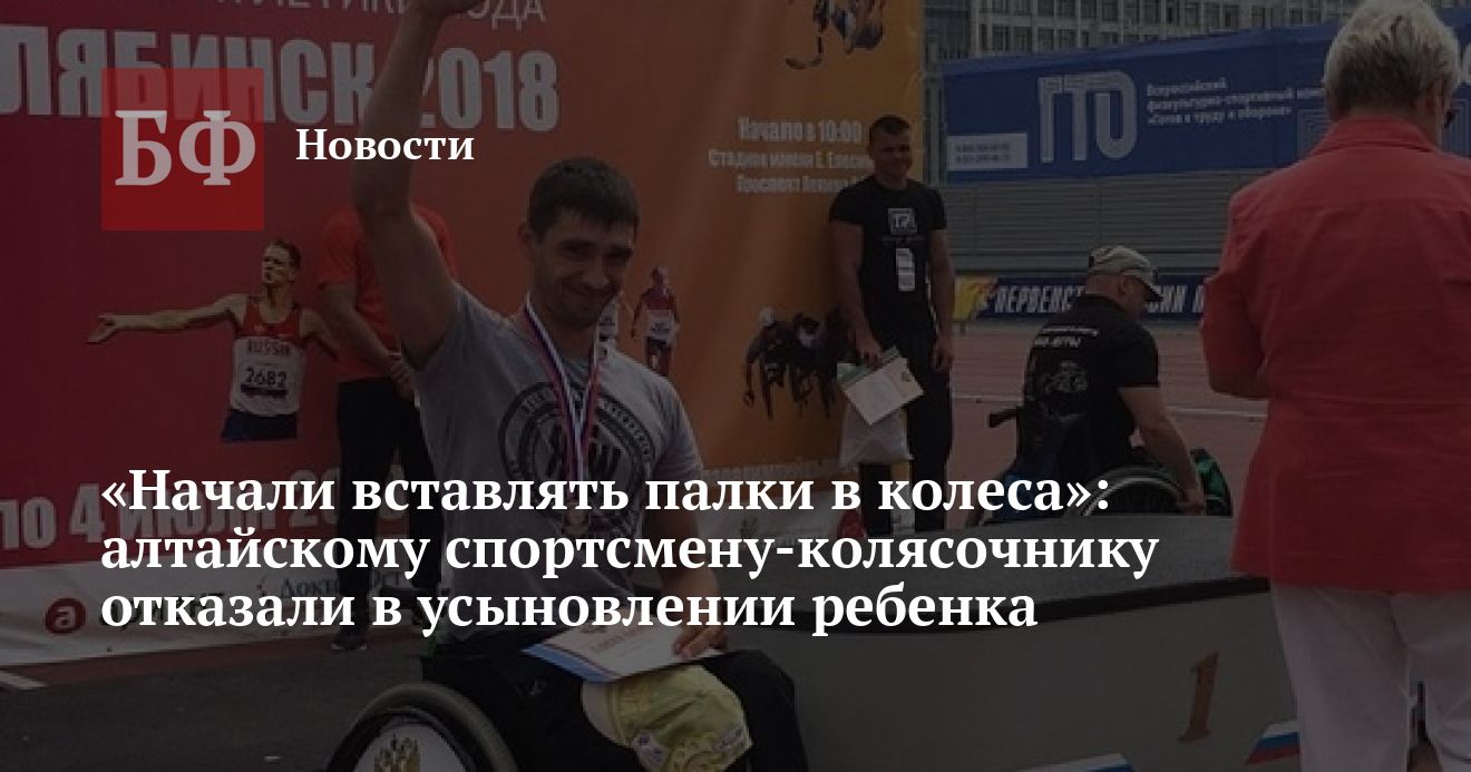 Алтайский инваспортсмен Иван Ревенко, который три года назад вместе со своей супругой переехал на ПМЖ в Краснодарский край, не может получить разрешение на усыновление ребенка. Молодой семье отказали уже несколько раз по разным поводам. Супруги Ревенко считают, что им не дают право стать усыновителями приемного ребенка из-за инвалидности главы семейства, который передвигается на коляске. Вместе с тем спортсмен и его жена настаивают, что они вполне обеспечены, дееспособны и в состоянии стать для сироты настоящей семьей, сообщает «Московский комсомолец — Кубань».