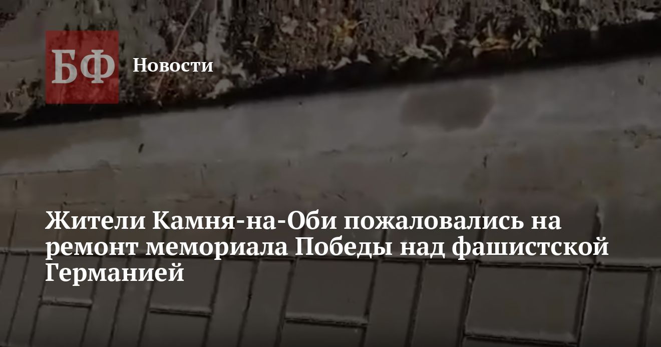 Пожилая жительница Камня-на-Оби Лидия Глазунова возмутилась качеством проведенных работ на мемориале, посвященном 20-летию Победы над фашистской Германией. Вместе с депутатом Алтайского Заксобрания Василием Железовским она проверила итоги ремонта: уложенная брусчатка и другие изъяны вызвали серьезные вопросы: на видеозаписи и фото отчетливо видно, что плитка «гуляет». Между тем принимать работы мэрия будет уже 1 августа. Власти также объяснили ИА «Банкфакс», что заключили договор на ремонт без торгов, то есть процедура оказалась не прозрачной.