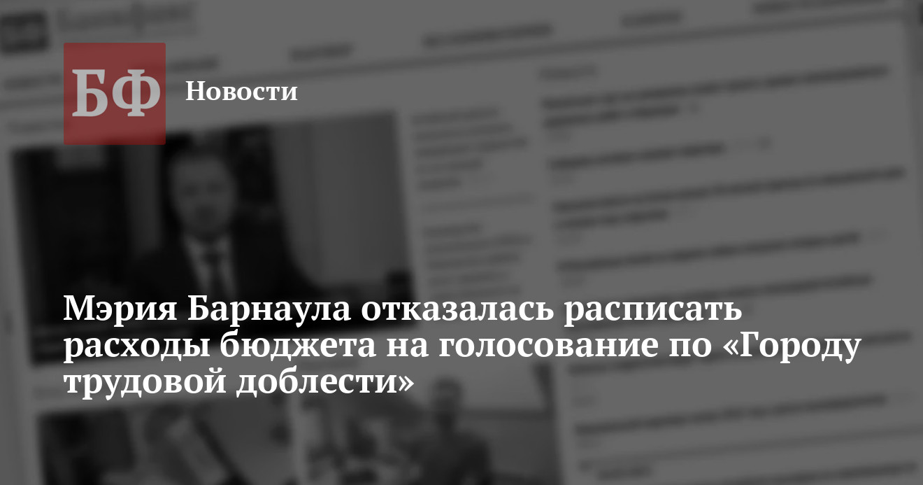 Редакция решила уточнить, какие именно траты профинансировал городской бюджет. Мэрии был задан вопрос: «На какие конкретно мероприятия была потрачена эта сумма постатейно?» На него был дан следующий ответ: «176 997,7 рублей были направлены на организацию процедуры голосования по присвоению городу Барнаулу звания «Город трудовой доблести».