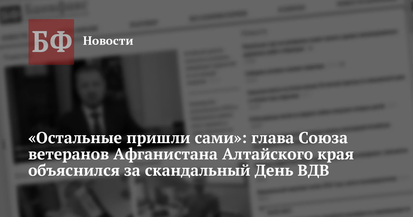 Председатель правления Алтайской краевой организации им. Героя Советского Союза Константина Павлюкова «Российский Союз ветеранов Афганистана» Сергей Завалихин высказался по поводу праздничного мероприятия, прошедшего 2 августа в Барнауле ко дню ВДВ. Ранее жители края в соцсетях выразили недоумение по поводу проведения массового праздника в период ограничительных мер, в котором приняли участие и первые лица региона, а представители власти не смогли ответить по этому поводу ничего внятного. Завалихин заявил «ПолитСиб.ру», что организаторы не планировали собирать десятки и сотни людей — они рассчитывали на 30 человек, а «остальные пришли сами». Выяснить в правительстве, какое количество людей дает основание называть мероприятие не массовым, ИА «Банкфакс» не удалось.