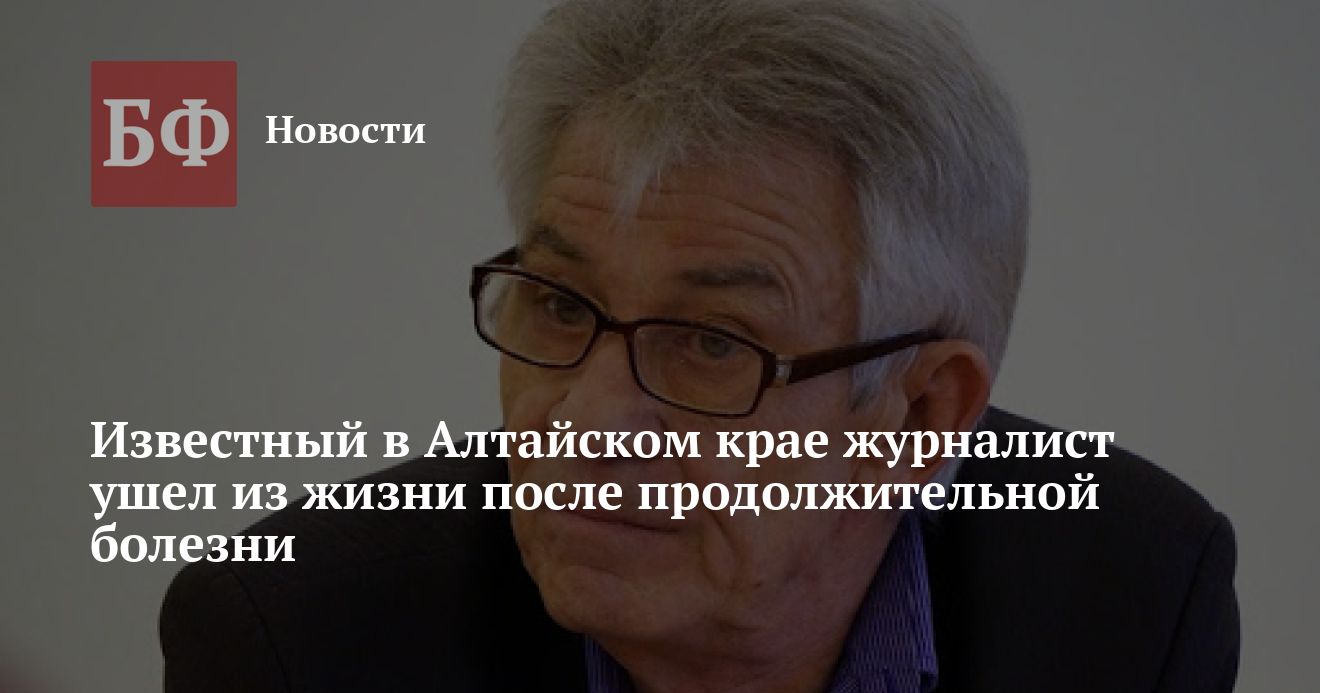 8 августа в Алтайском крае состоится прощание с известным в регионе журналистом и обозревателем Сергеем Шевляковым. Последние несколько лет он возглавлял деловой информационно-аналитический журнал «Алтайский край». Как сообщили близкие покойного, он скончался в результате продолжительной болезни.