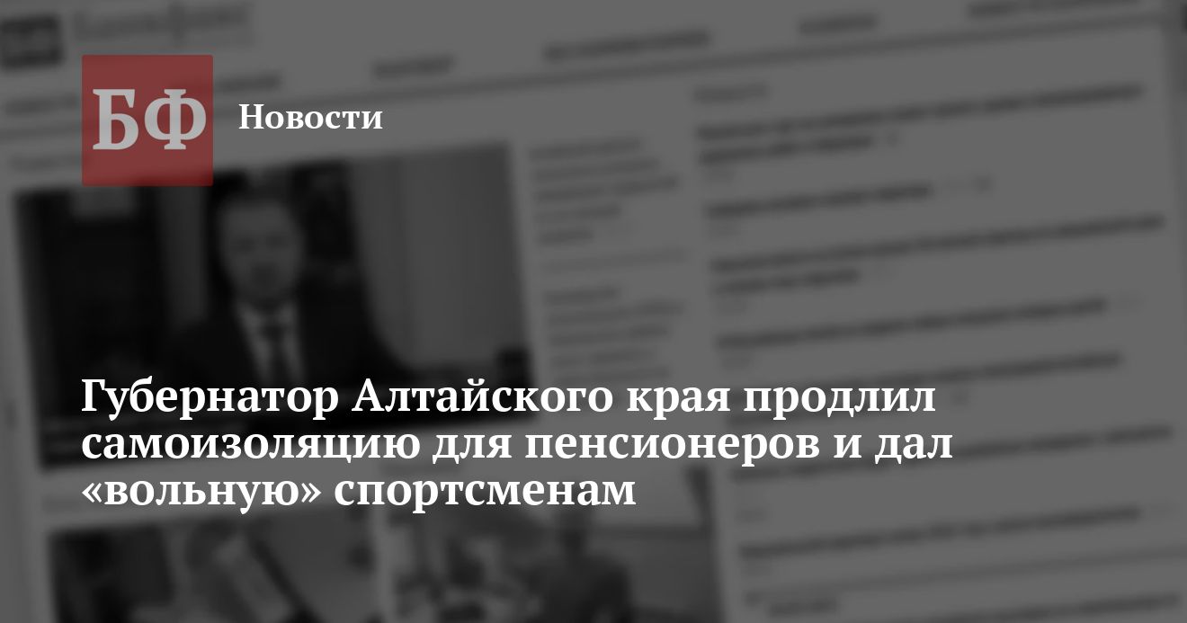 Офсайт правительства Алтайского края 20 августа опубликовал новую редакцию ковидного указа главы региона Виктора Томенко. С одной стороны, власти делают послабления для спортсменов, а с другой продлевают режим самоизоляции для пенсионеров до начала октября.