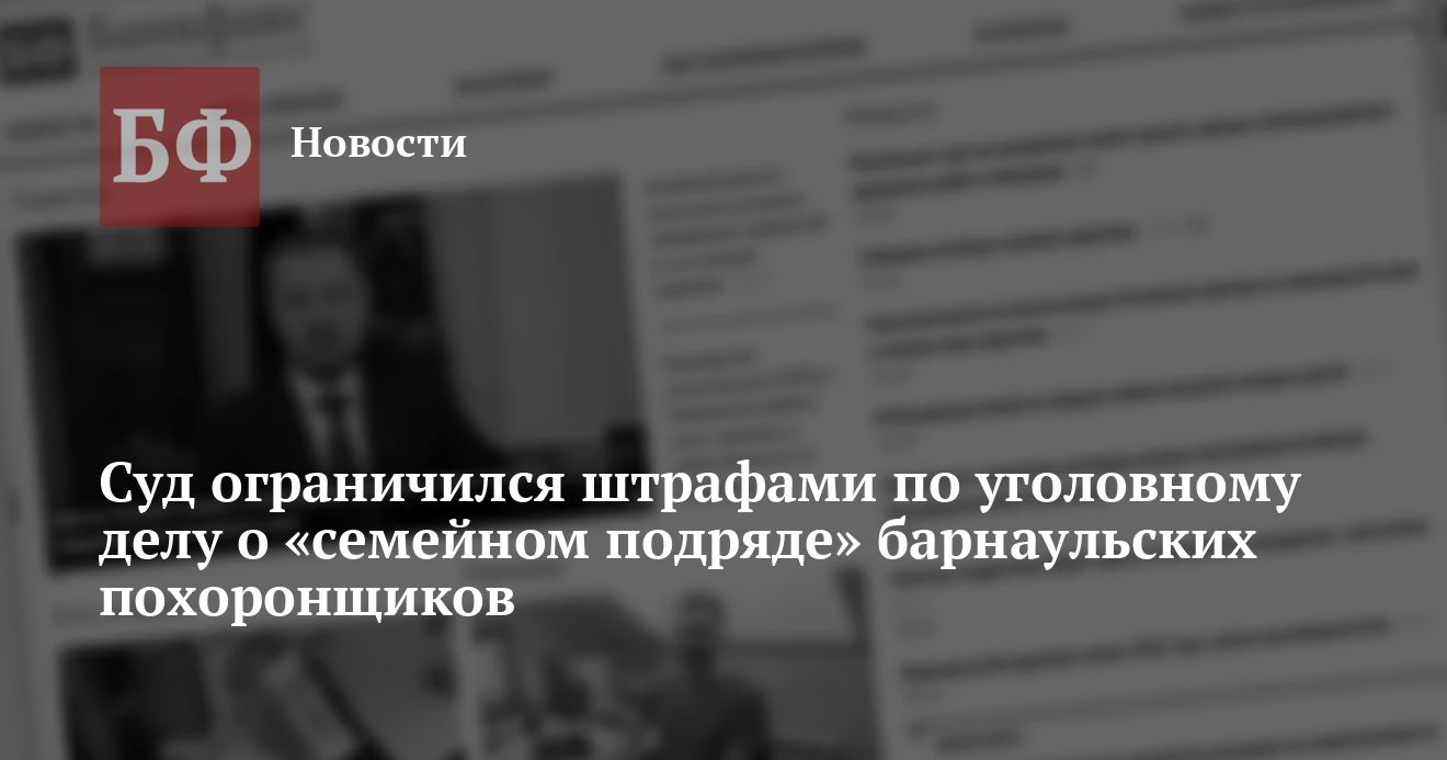 Суд вынес обвинительный приговор в отношении бывшего директора МУП «Специализированная похоронная служба Барнаула» Виталия Иконникова и его отца — специалиста по оказанию ритуальных услуг ООО «Сибинтекс» Евгения Иконникова, которых обвиняли в незаконном предпринимательстве. Как сообщается на сайте СУ СКР по Алтайскому краю, они ранее признали вину, поэтому в вердикте фигурирует только штраф.
