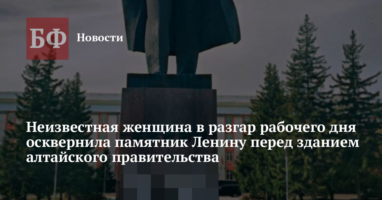 17 сентября днем жители Барнаула сообщили в Сети о том, что памятник вождю пролетариата Владимиру Ленину, расположенный на одноименном проспекте, прямо у здания правительства Алтайского края, был расписан нецензурными выражениями. По свидетельству очевидцев, памятник осквернила неизвестная женщина, которую уже задержали. В ГУ МВД России по Алтайскому краю ИА «Банкфакс» факт вандализма подтвердили и отметили, что в настоящее время запись, нанесенную краской, пытаются смыть.