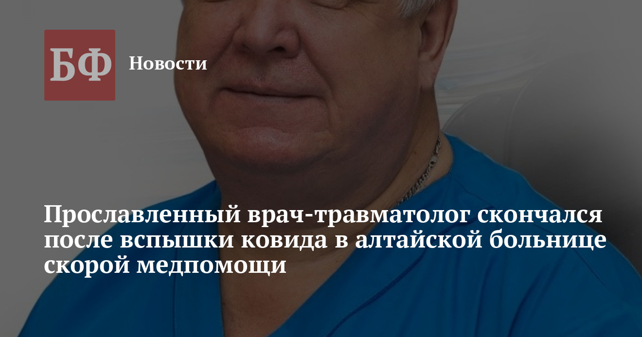1 октября скончался заведующий первым травматологическим отделением БСМП Игорь Деев. В данный момент неизвестно, когда состоится прощание с уважаемым медиком. В приемной клиники «Банкфаксу» сообщили, что этого не знают и родственники, поскольку после его кончины «проводятся необходимые медицинские процедуры в городской больнице Барнаула № 5». Так как это учреждение является ковидным госпиталем, можно сделать вывод, что умерший мог быть инфицирован.