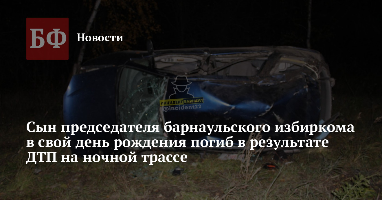 Избирком Алтайского края выразил соболезнования председателю избирательной комиссии Барнаула Виталию Замаруеву в связи со смертью сына Ильи. Как стало известно ИА «Банкфакс», молодой человек скончался в результате ДТП, произошедшего в ночь с 9 на 10 октября, в первые же часы своего 20-го дня рождения.