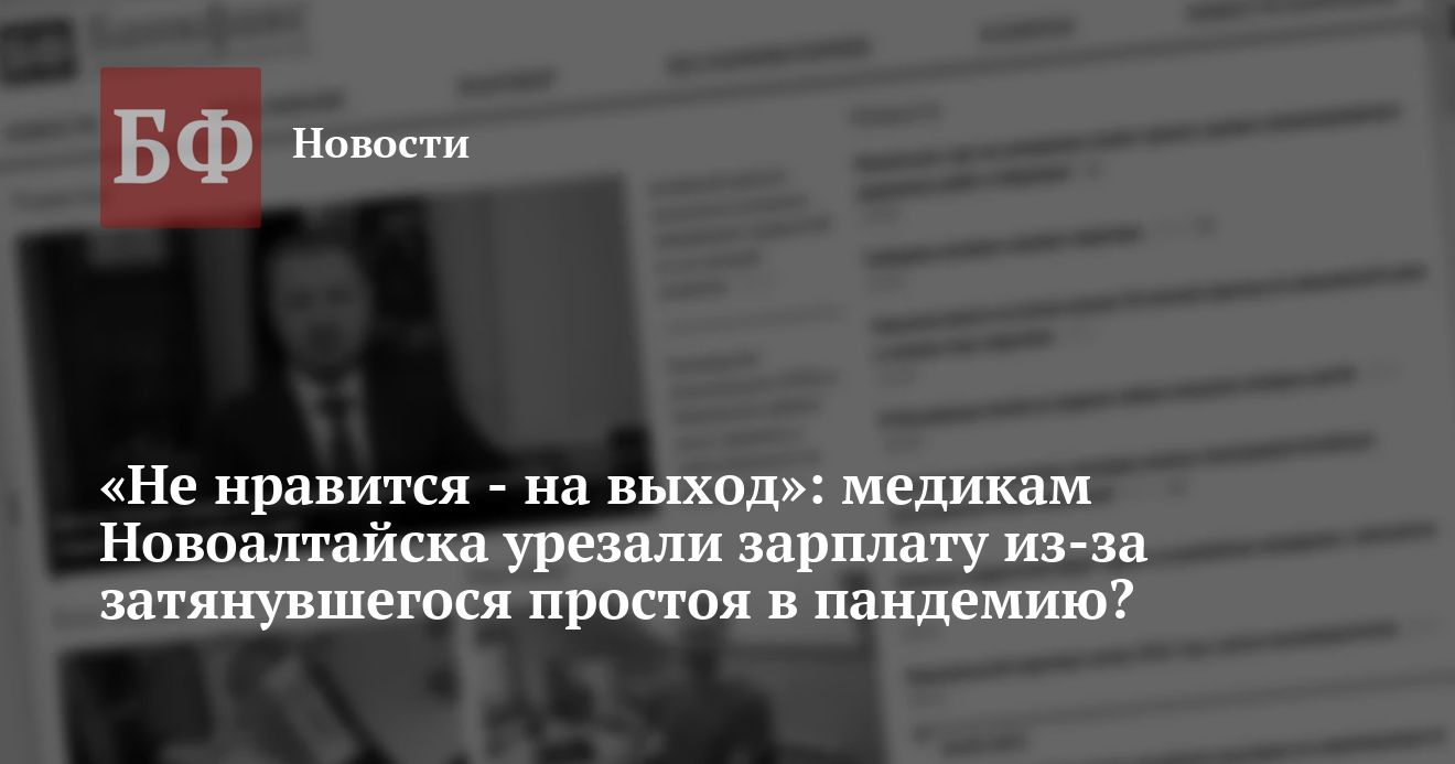 Сотрудников отделения реабилитации новоалтайской больницы им. Л. Я. Литвиненко якобы поставили перед выбором — либо работать за 3 тысячи рублей в месяц, либо отправляться на передовую в ковидный госпиталь, чтобы хоть немного заработать. Об этом телеканалу «Толк» сообщила одна из медработников больницы. Главврач учреждения данный факт отрицать не стал, однако из его слов следует, что это вынужденная мера, а медики просто не хотят работать.