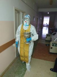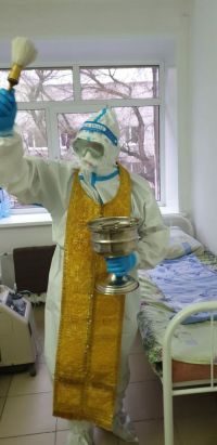 Как указано в сообщении, 10 ноября отец Андрей Ушаков посетил оба корпуса ковидного госпиталя в Заринске — здание бывших инфекционного отделения и роддома. Главврач больницы Алексей Бракоренко рассказал, что батюшка освятил ординаторскую, приемный покой, палаты, окропил святой водой пациентов. Он также передал госпиталю пять икон — на каждый пост и в реанимацию. С учетом соблюдения требований и обязательной смены костюма в каждом из корпусов, посещение заняло более полутора часов.