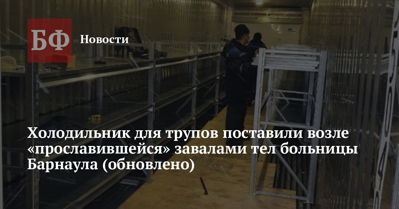 Рядом с городской больницей Барнаула № 11, где находится ковидный морг, установили мобильное хранилище для трупов. В Минздраве Алтайского края «Толку» подтвердили, что рефрижератор поставили для уже вскрытых тел, которые не забрали родственники. Ранее на всю страну прогремело видео из подвала медучреждения, который оказался завален мешками с мертвыми людьми.