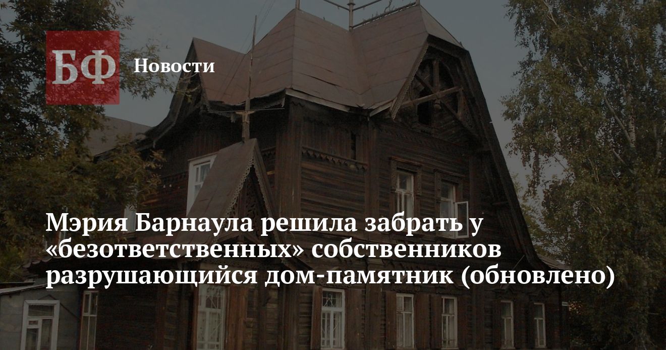 Речь идет о деревянном двухэтажном здании 1907 года постройки, известном как дом инженера Александра Лесневского. Он входит в реестр объектов культурного наследия федерального значения, но не видел реставрации уже несколько десятков влет и был признан аварийным. В начале текущего года СМИ даже сообщали о частичном обрушении крыши здания под тяжестью снега. До сих пор там проживали люди — собственники помещений. На них была возложена обязанность реставрации дома, однако с этой задачей они не справились. Это следует из постановления администрации Барнаула об изъятии жилых помещений и участка под зданием. «В связи с неосуществлением собственниками жилых помещений в многоквартирном доме, признанном аварийным и подлежащем реконструкции, его реконструкции в установленный срок», — указано в документе, подписанном главой города Вячеславом Франком и опубликованном на сайте мэрии.